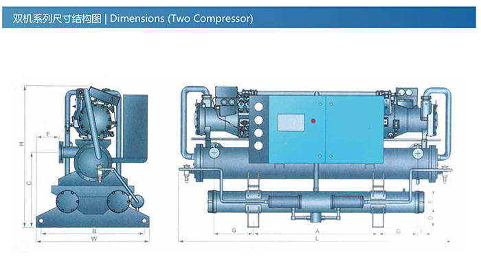 TICC-W series central water-cooled chillers adopt Germanmade BITZER with twin screw compressors,models with one or two compressors,